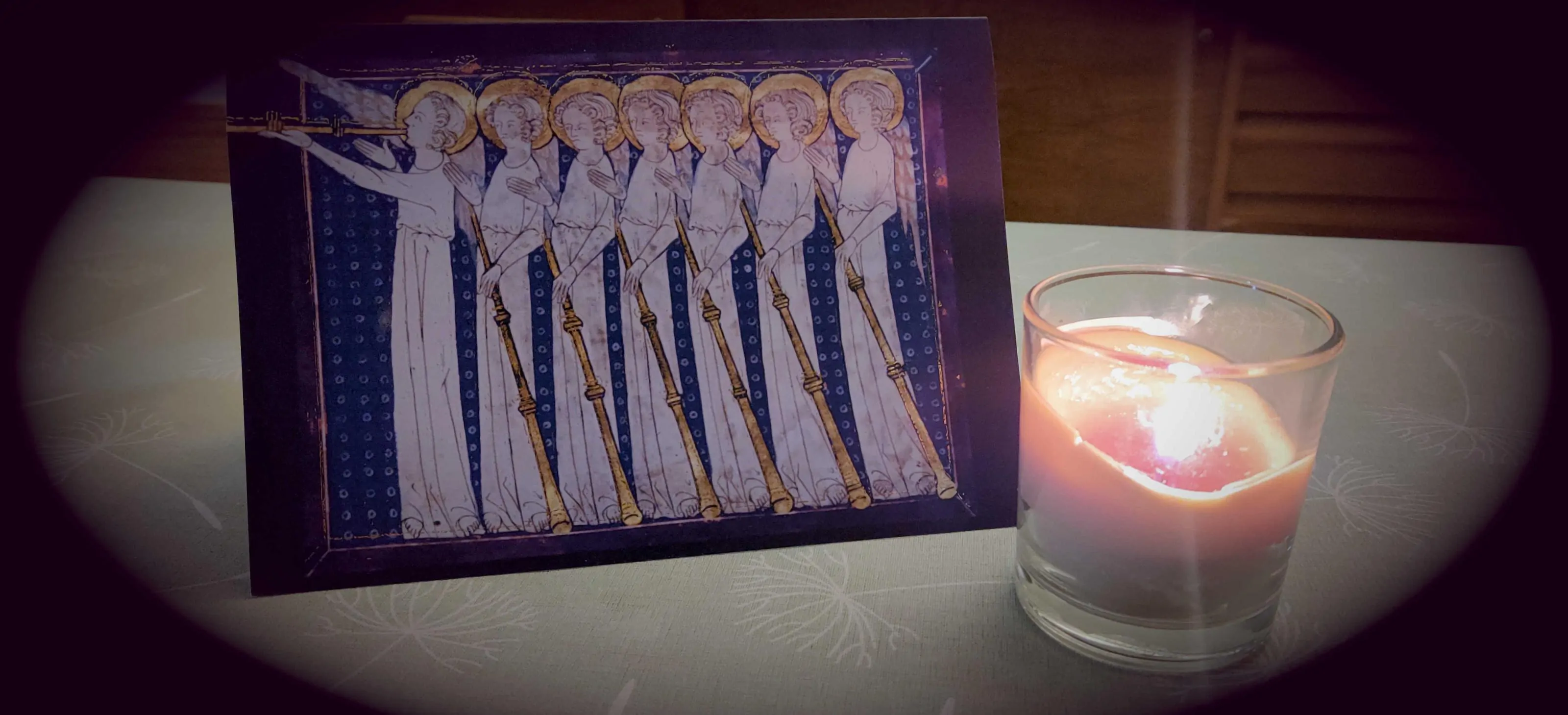 Mediaeval image of the seven angels with seven trumpets from The Patmos Book of Carols